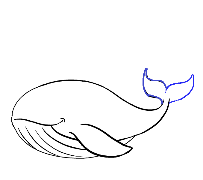 Dessinez une nageoire supplémentaire de l’autre côté et une bouche pour la baleine