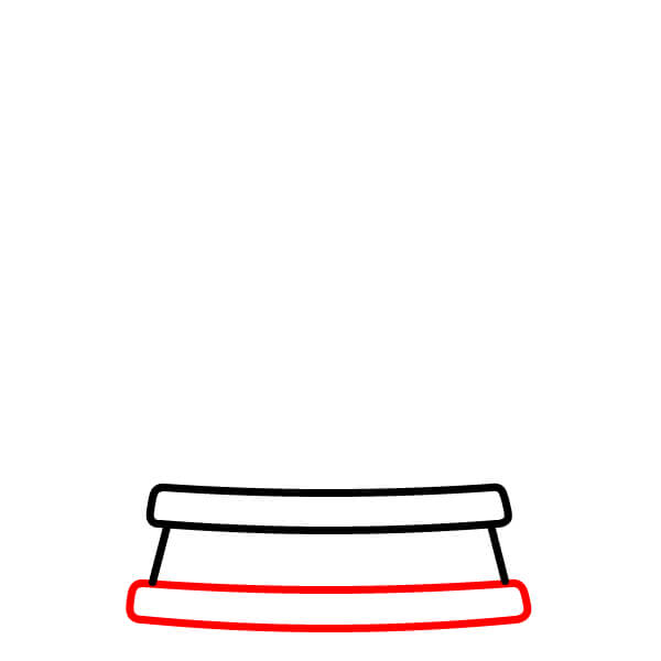 Étape 1 : Tracez un rectangle horizontal allongé et légèrement incurvé pour former l’anneau supérieur de la base.