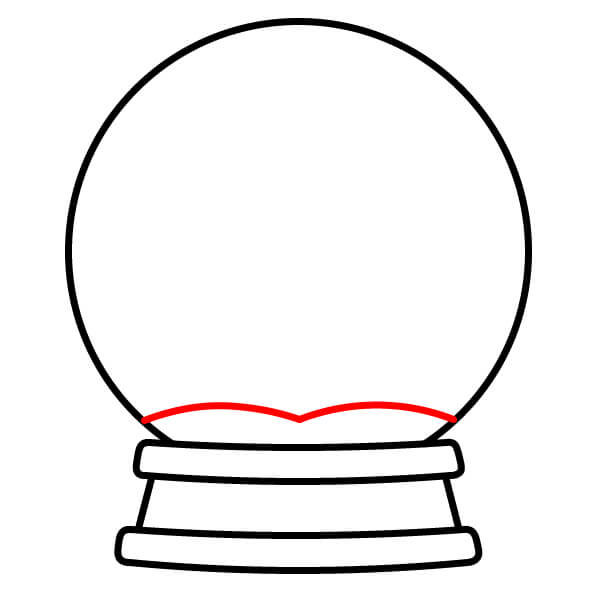Étape 6 : À l’intérieur du bas du globe, dessinez une ligne ondulée et irrégulière pour représenter le sol enneigé, légèrement incurvée vers le haut pour former une petite colline.