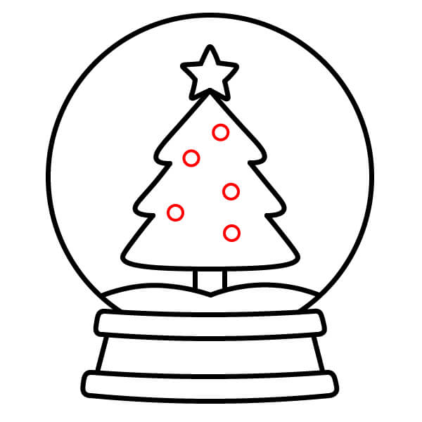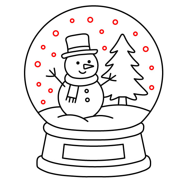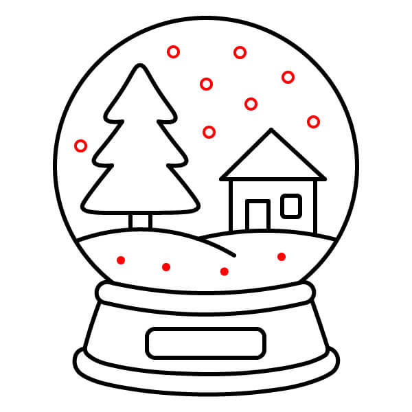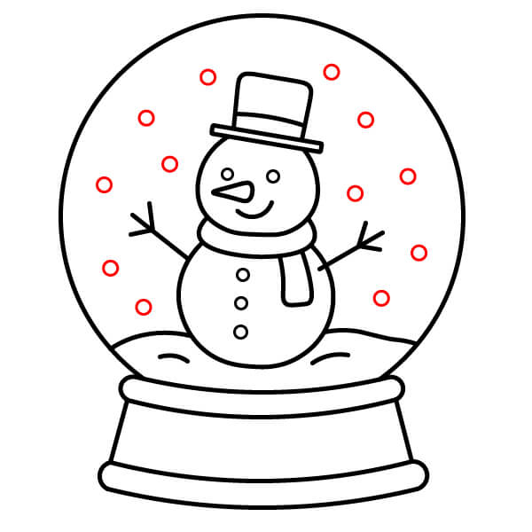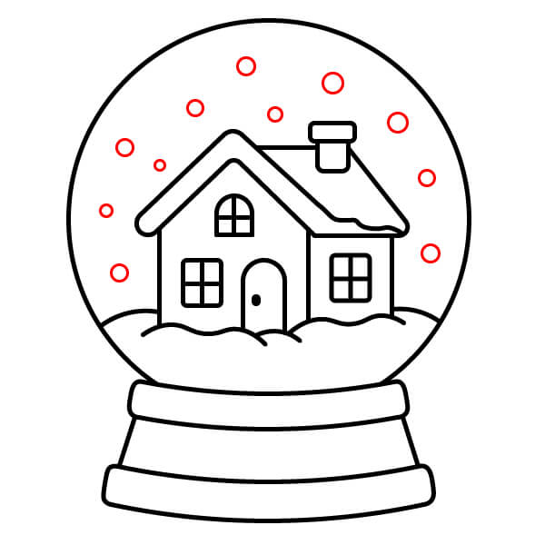 Étape 10 : Dessinez plusieurs petits cercles dispersés à l’intérieur du globe pour représenter les flocons de neige.