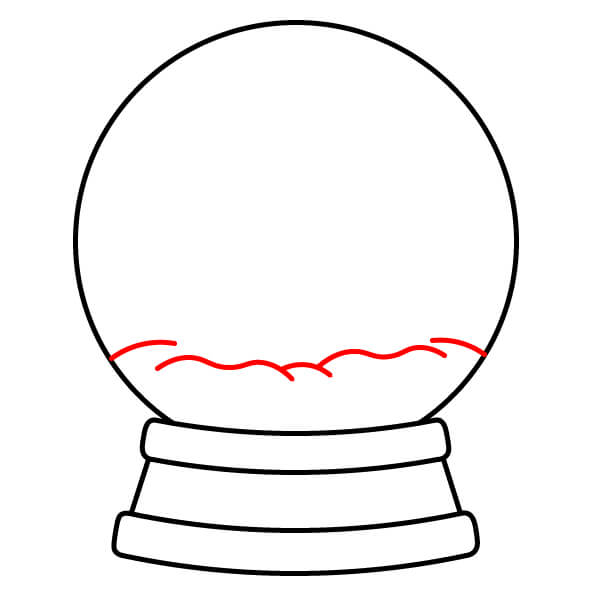 Étape 5 : À l’intérieur du globe, près du bas, tracez une ligne ondulée et irrégulière pour représenter un monticule de neige/terre.
