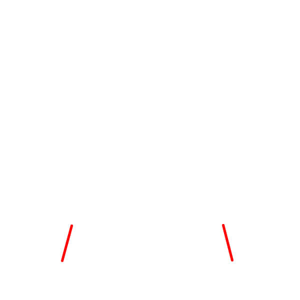 Étape 2 : À partir des extrémités de la forme de l’étape 1, tracez deux courtes lignes verticales obliques vers le bas.