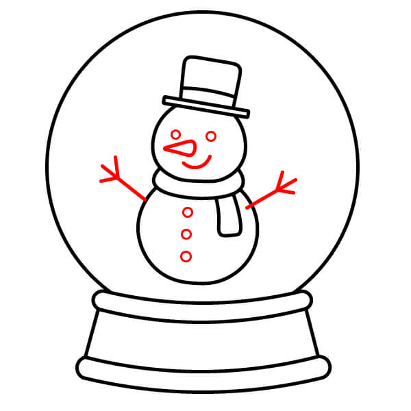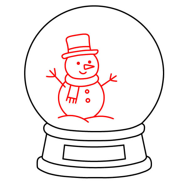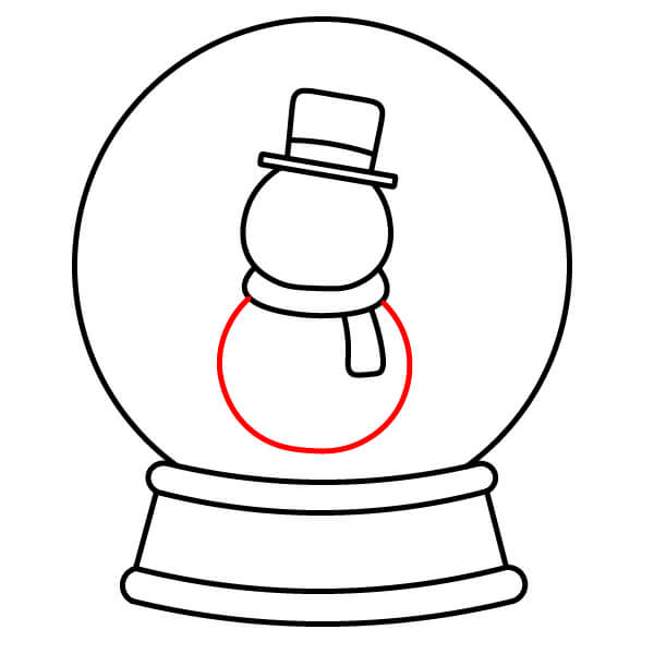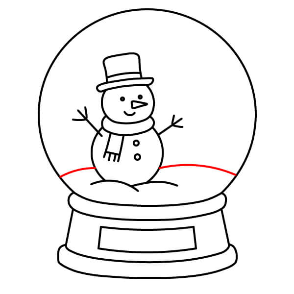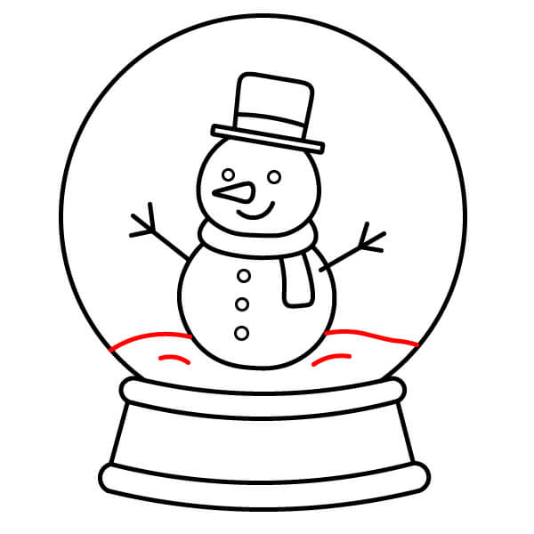 Étape 7 : Tracez une ligne ondulée en bas du globe, juste sous le bonhomme de neige, pour représenter un monticule de neige.