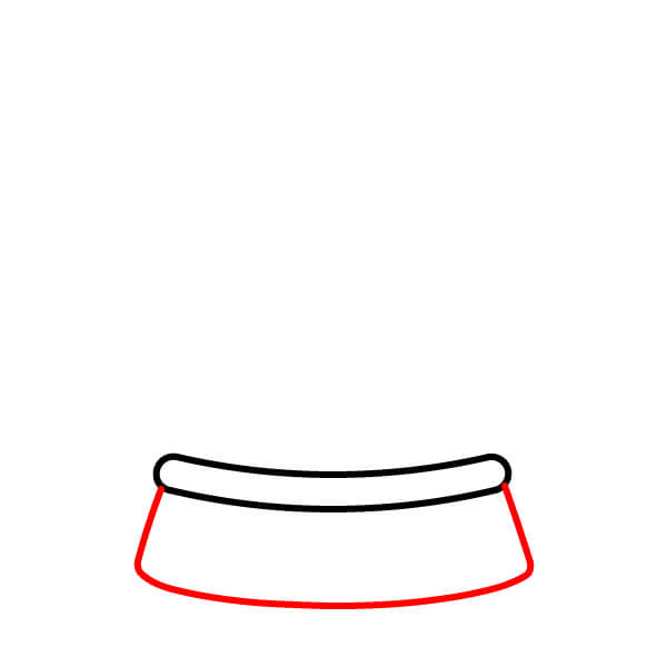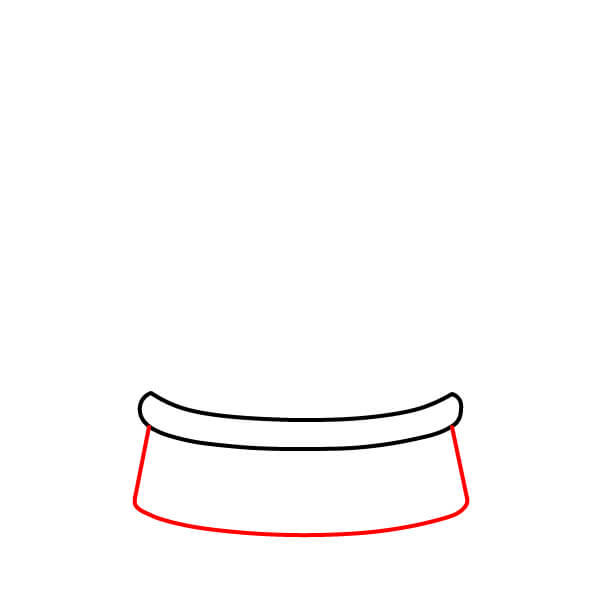 Étape 2 : Tracez deux lignes verticales obliques partant des extrémités de la forme de l’étape 1 et reliez leurs bases par une large ligne courbe. Ceci forme la partie principale de la base.