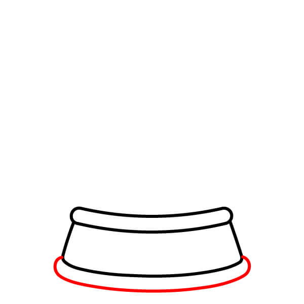 Étape 3 : Tracez une forme incurvée plus large sous les lignes obliques, parallèle à la première forme, pour compléter la couche inférieure de la base. Ajoutez une ligne horizontale près du bas de cette première forme incurvée pour compléter l’anneau du milieu.