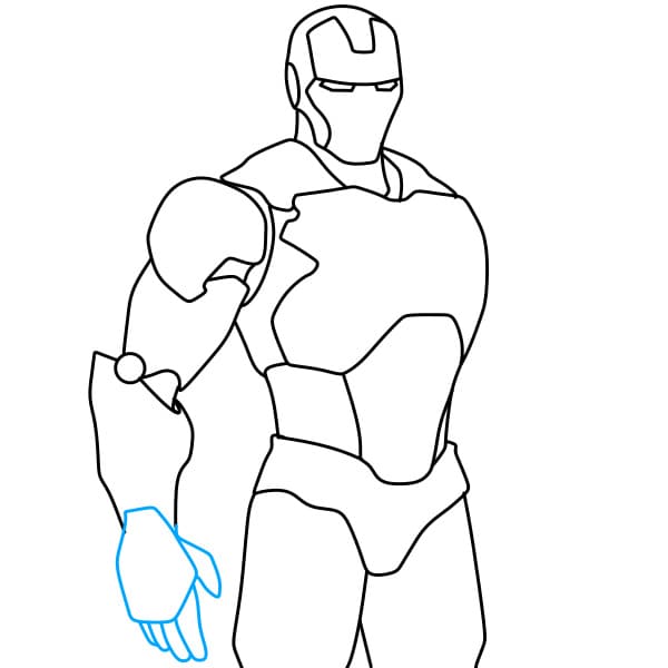Étape 8: Dessinez de petits détails sur la tête, le torse, les bras et les jambes de l’homme de fer à tour de rôle
