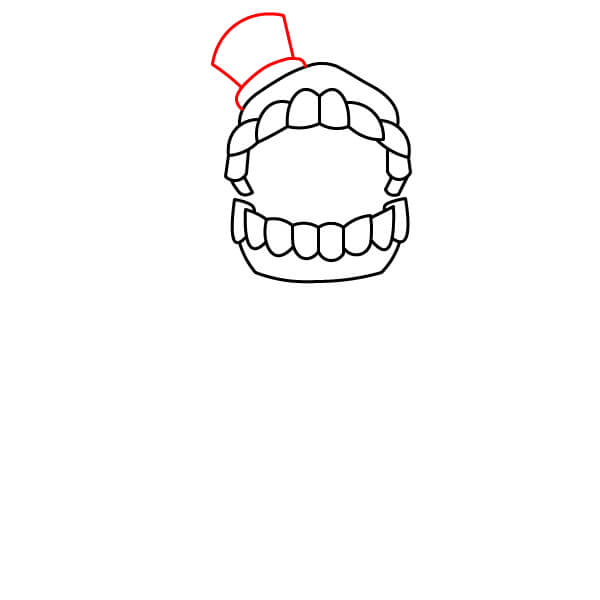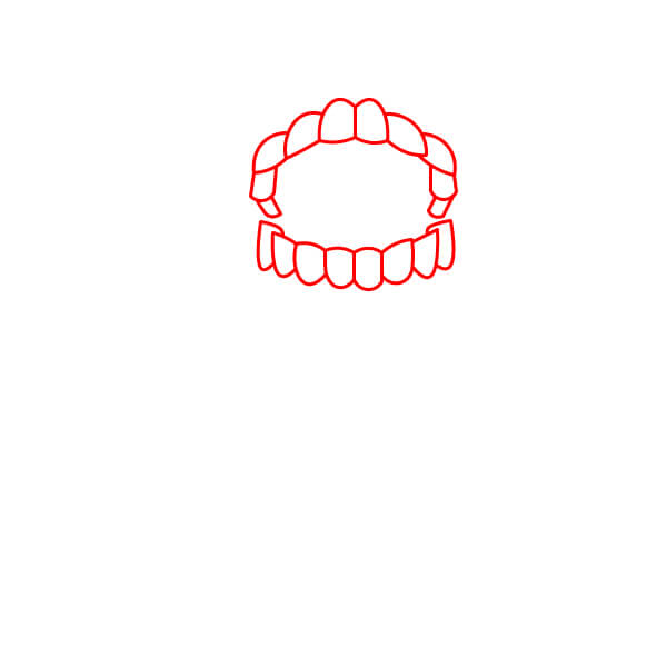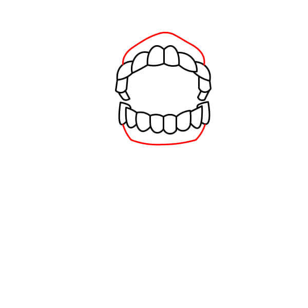 Tracez une courbe rouge autour des dents pour compléter la forme de la bouche et de la tête. Ce contour représente les gencives.