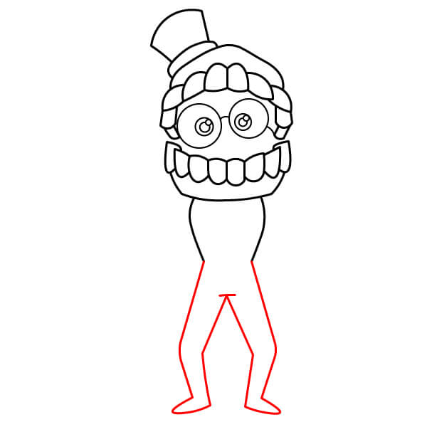 Dessinez deux jambes courtes et fines qui descendent du bas de la combinaison. Ajoutez le short/pantalon bouffant juste au-dessus des genoux. Terminez en dessinant de grandes bottes ou chaussures rondes au bout des jambes.