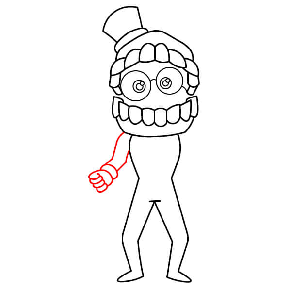 Dessinez le bras droit (du point de vue du spectateur) tendu devant lui. Le bras doit être plié au niveau du coude et se terminer par un poing fermé, les doigts étant représentés par des traits simples.