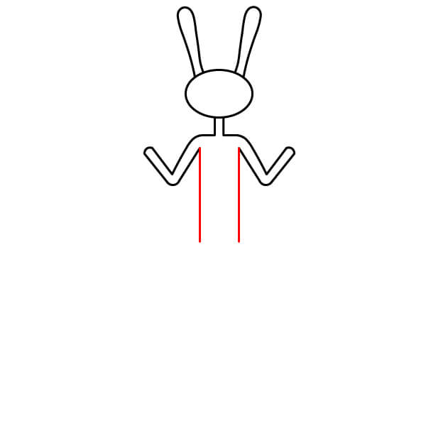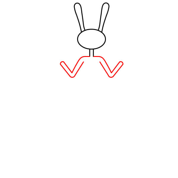 Dessinez deux longues oreilles de lapin pointant vers le haut, à partir du haut de l’ovale de la tête. Elles doivent être parallèles et légèrement incurvées en forme de U à leur extrémité supérieure.