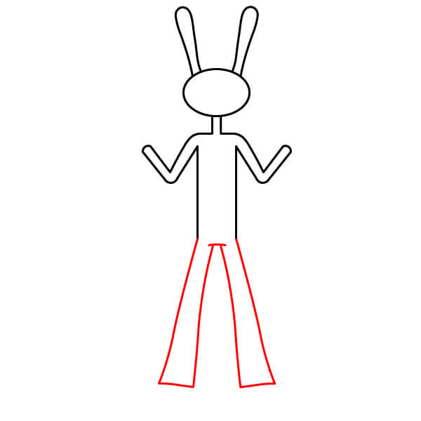Tracez deux longues lignes verticales parallèles partant du V formé par les bras. Cela crée le torse principal de son corps longiligne.