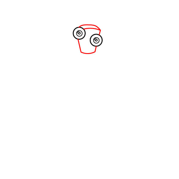 Commencez par dessiner deux grands cercles côte à côte, chacun contenant un cercle plus petit pour représenter les pupilles. Celles-ci symbolisent les grands yeux fixes de Kinger.