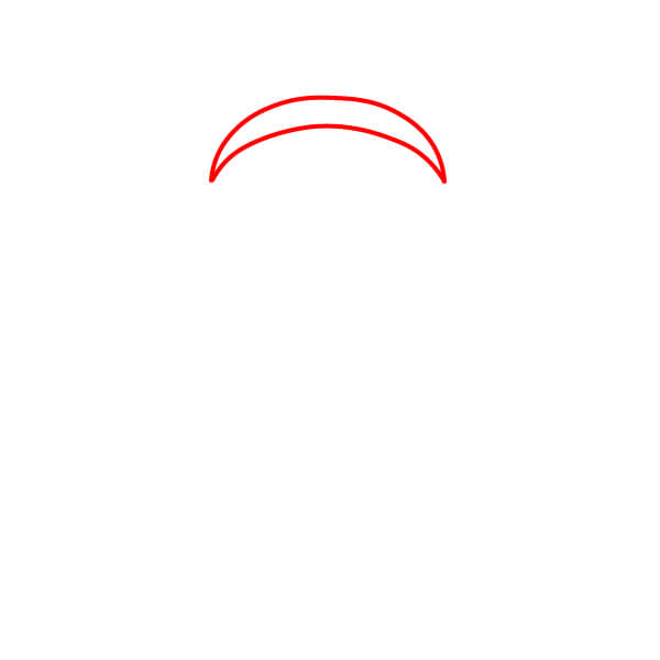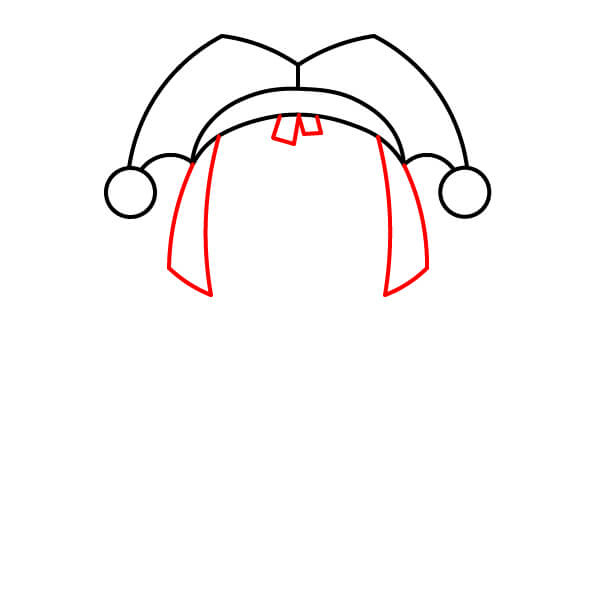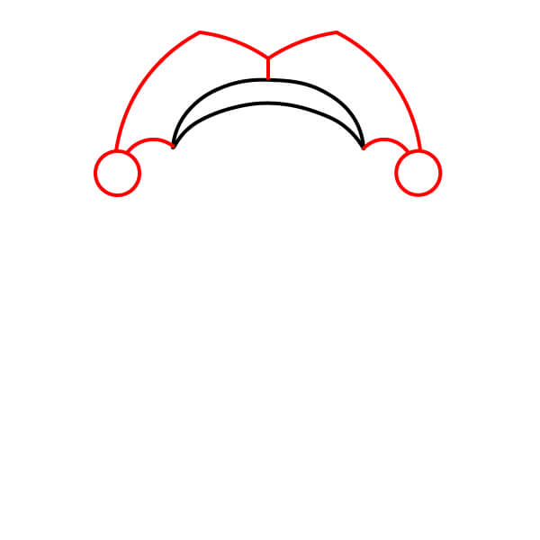 Dessinez la partie supérieure du chapeau, composée de deux rabats pointus et incurvés qui dépassent du bandeau. Ajoutez un cercle ou une clochette à l’extrémité de chaque rabat.