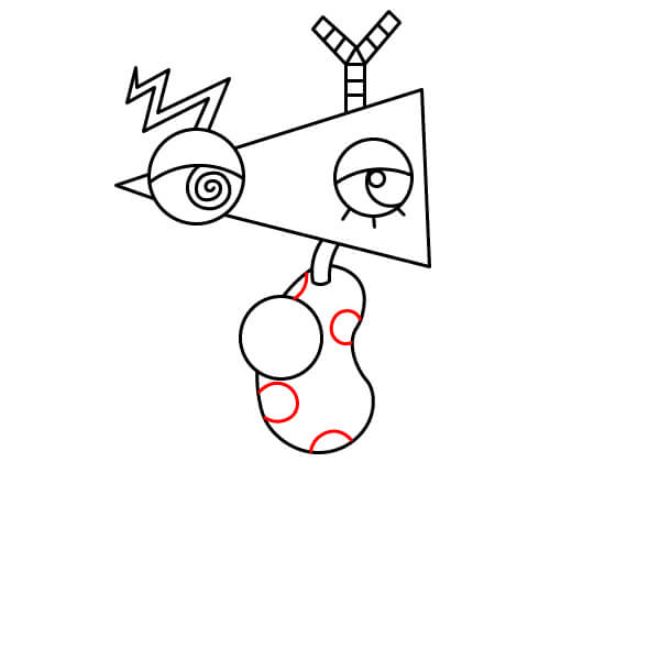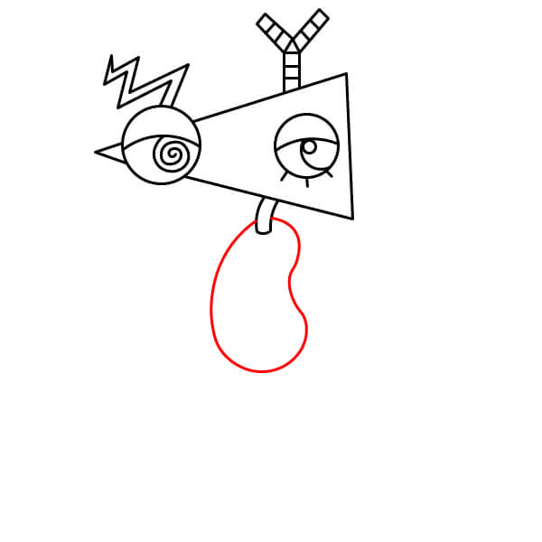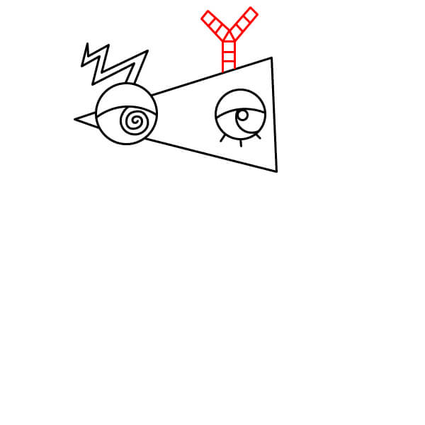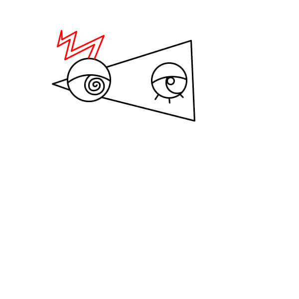 Dessinez un grand triangle (cône) partant du premier œil vers la droite. Il forme la base de la tête de Zooble.