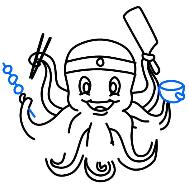 Étape 5: Dessinez les ustensiles de cuisine et les plats de poulpe