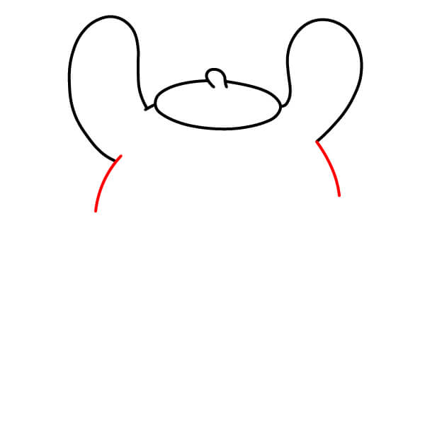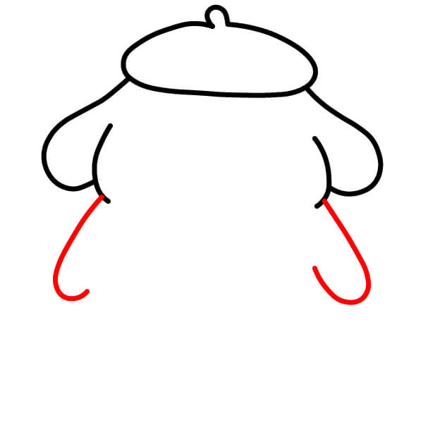 Sous les oreilles, dessinez deux longues lignes courbes descendant vers le bas. Elles formeront les mains de Pompompurin.