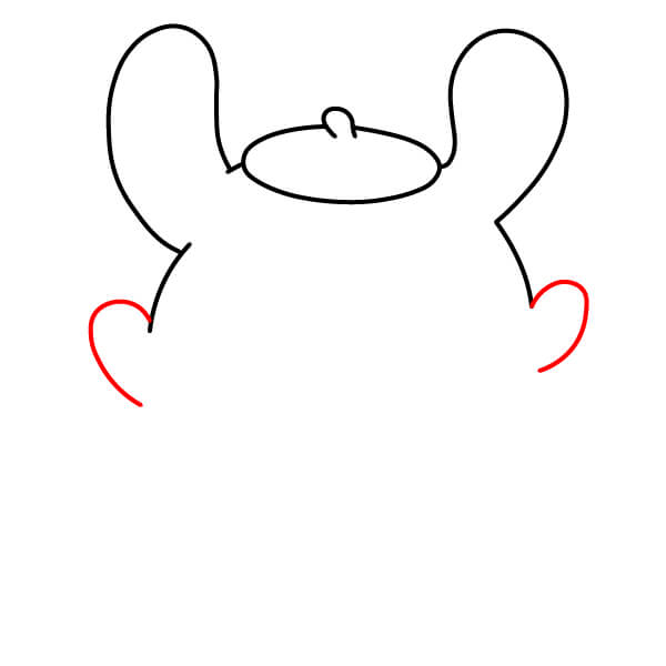 Sous les oreilles, dessinez deux lignes courbes qui montent vers le haut. Elles formeront les mains de Pompompurin.