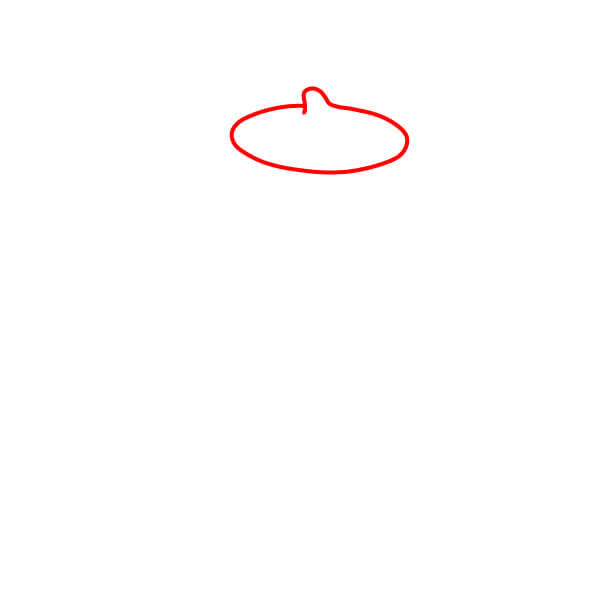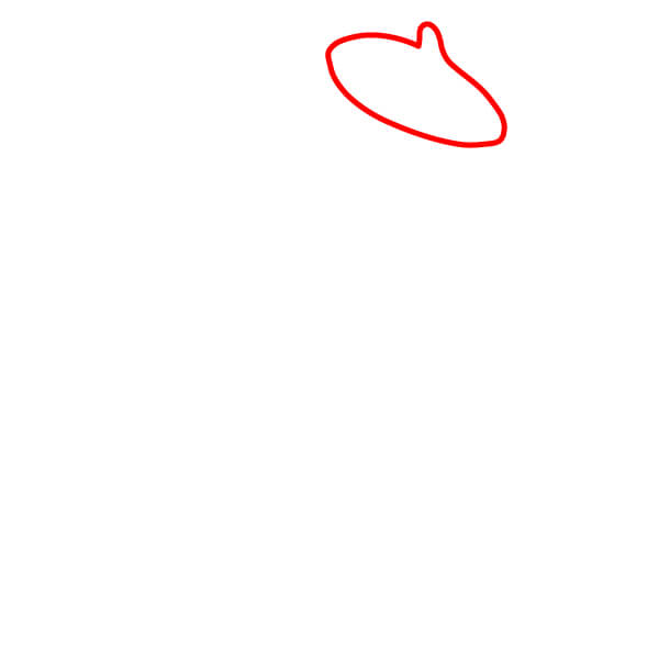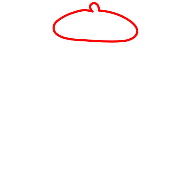 Commencez par dessiner une forme ovale avec une petite bosse sur le dessus. Ce sera le béret de Pompompurin.