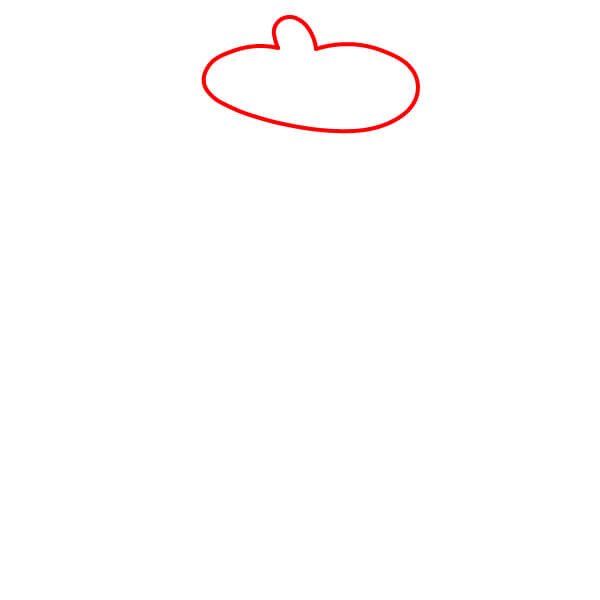 Commencez par dessiner une forme ovale avec une petite bosse ondulée sur le dessus. Ce sera le béret de Pompompurin.