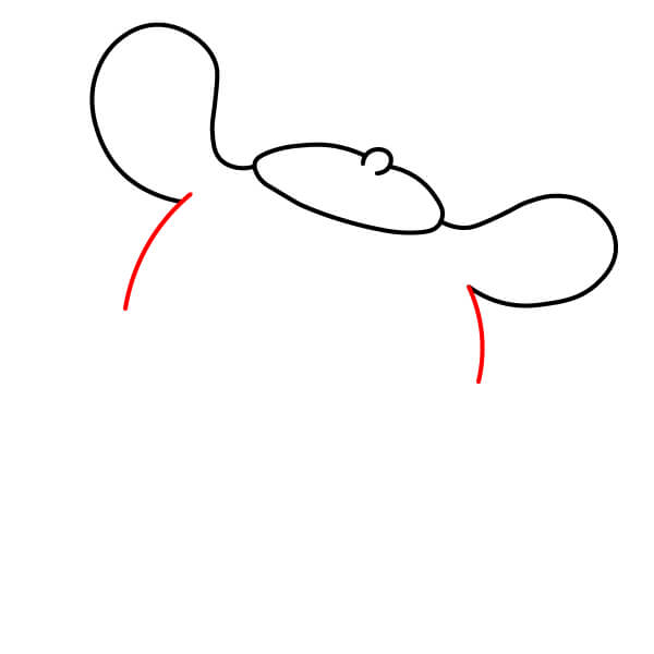 Dessinez une oreille arrondie sur le côté gauche et une très grande oreille tombante sur le côté droit de la tête, courbée vers le haut.
