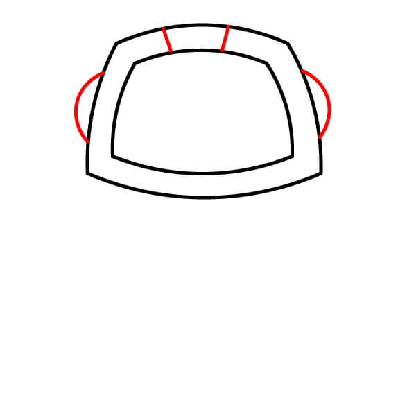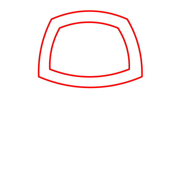 Dessine une grande forme arrondie en trapèze pour le contour extérieur de la tête. À l’intérieur, dessine une forme similaire légèrement plus petite pour créer la zone de l’écran.
