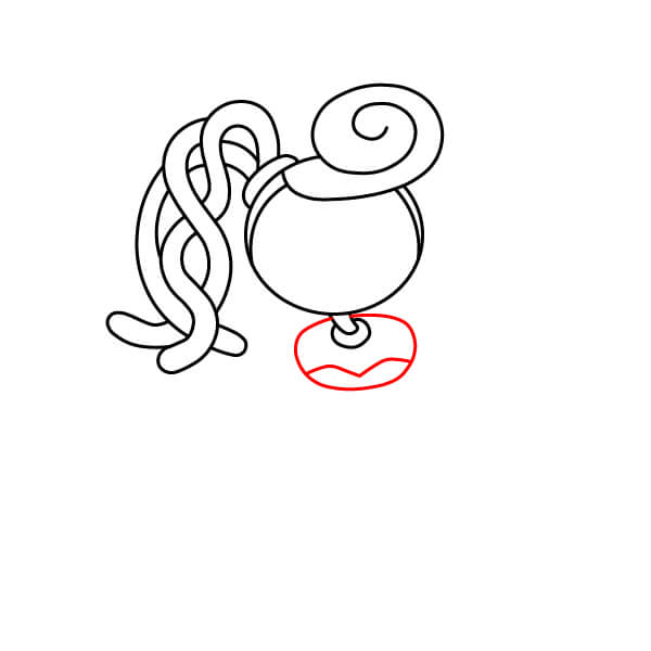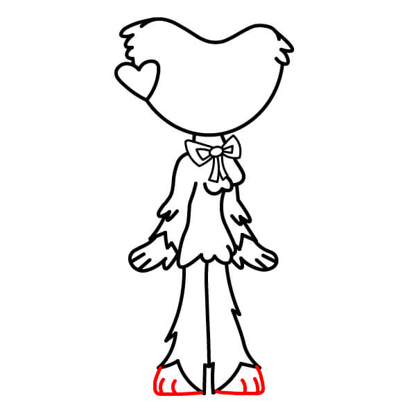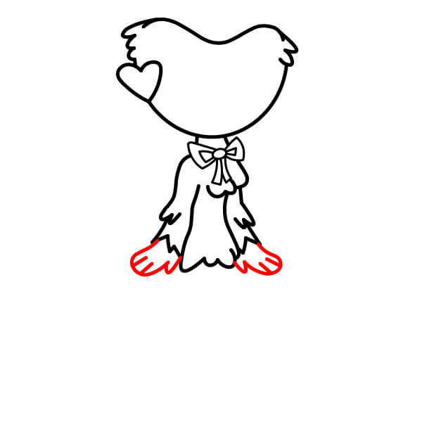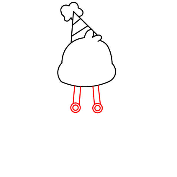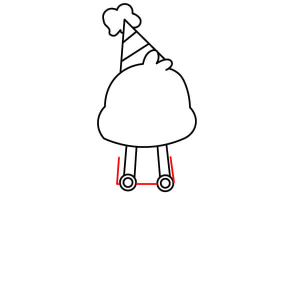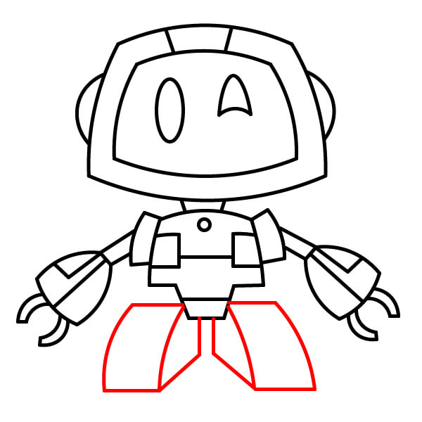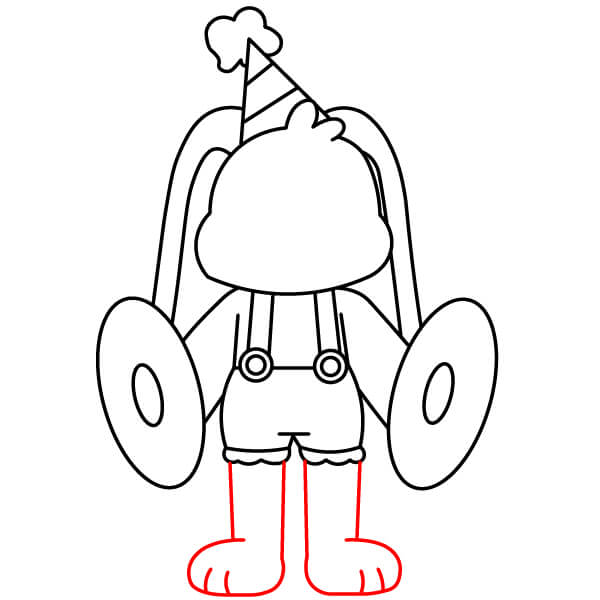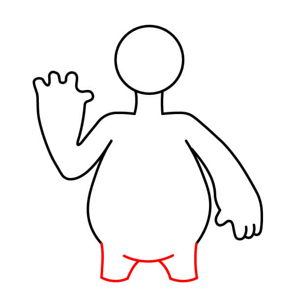 Complète les jambes en dessinant le bas arrondi des pieds. Ajoute deux ou trois petites séparations pour les orteils à l’avant de chaque pied.