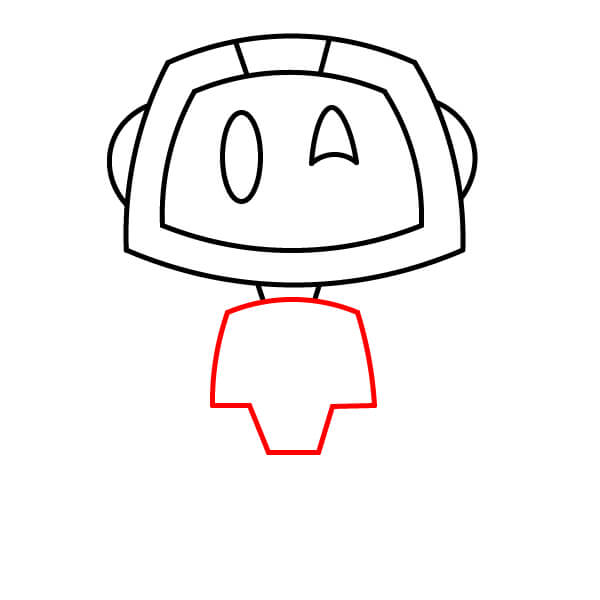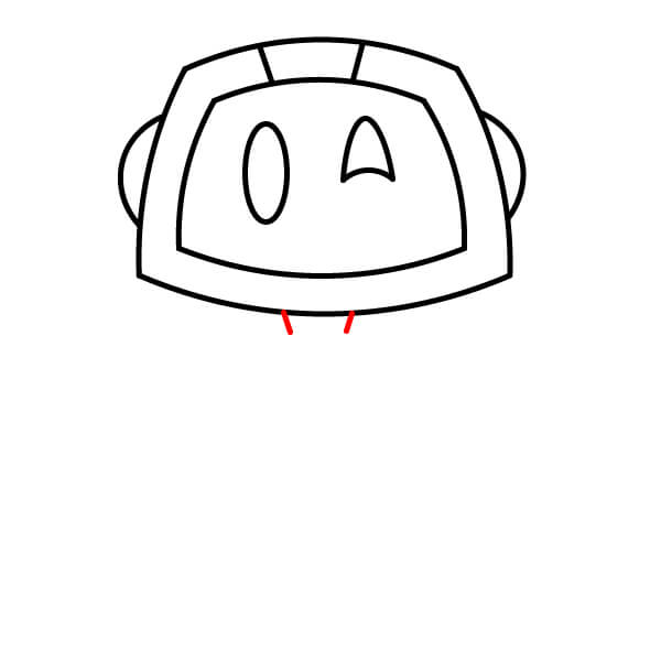 Dessine deux petites lignes verticales courtes descendant du centre inférieur de la tête/de l’écran pour former le cou.