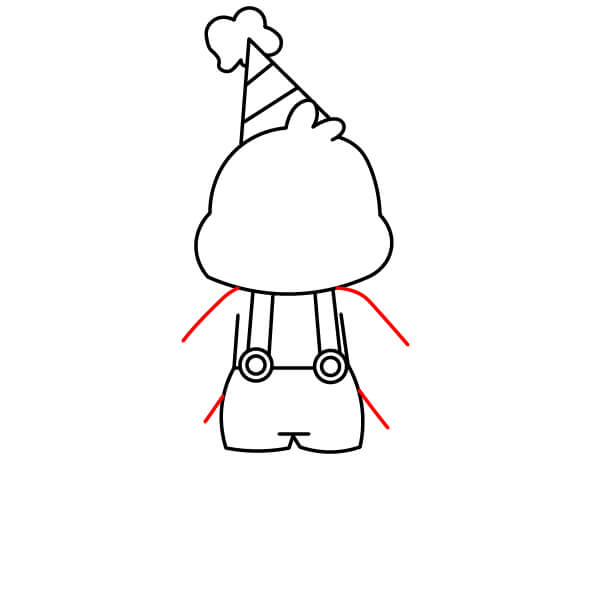 Dessine les mains fermées, en forme de moufles, au bas des bras.