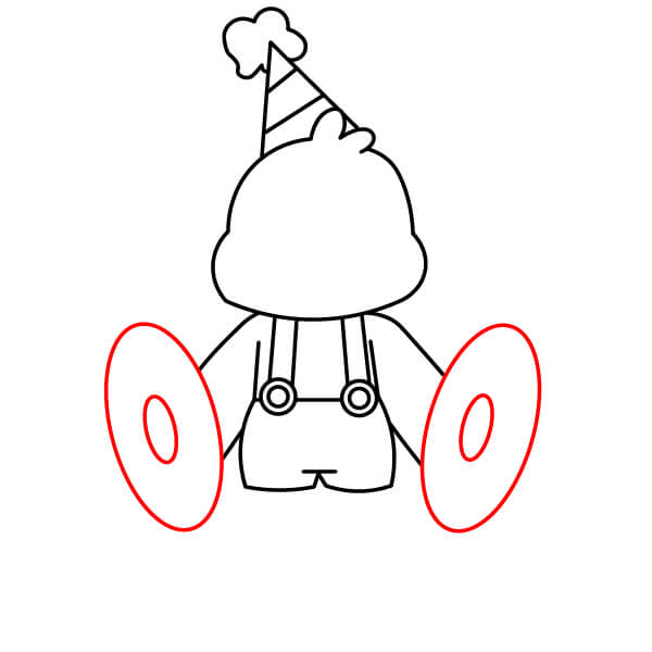 Dessine deux grandes formes ovales de chaque côté du corps pour les cymbales. À l’intérieur de chaque grand ovale, dessine un ovale légèrement plus petit pour représenter la poignée ou le trou central.