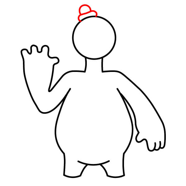 Dessine une grande forme arrondie pour la tête. Ajoute une petite forme ondulée ou duveteuse sur le dessus pour représenter une touffe de cheveux/de fourrure.