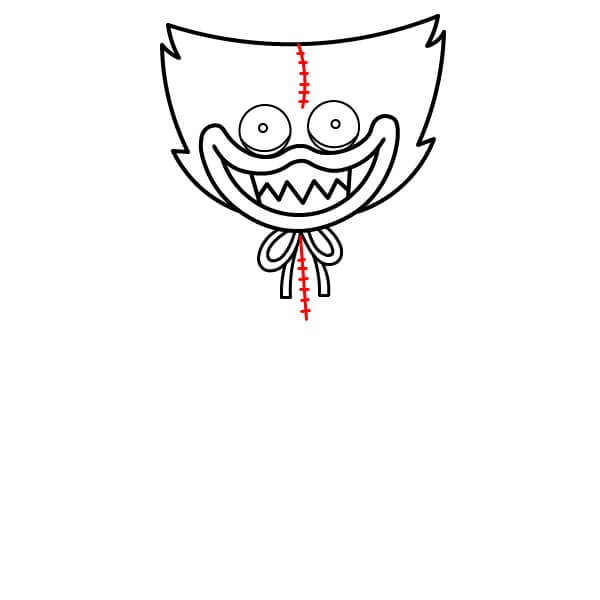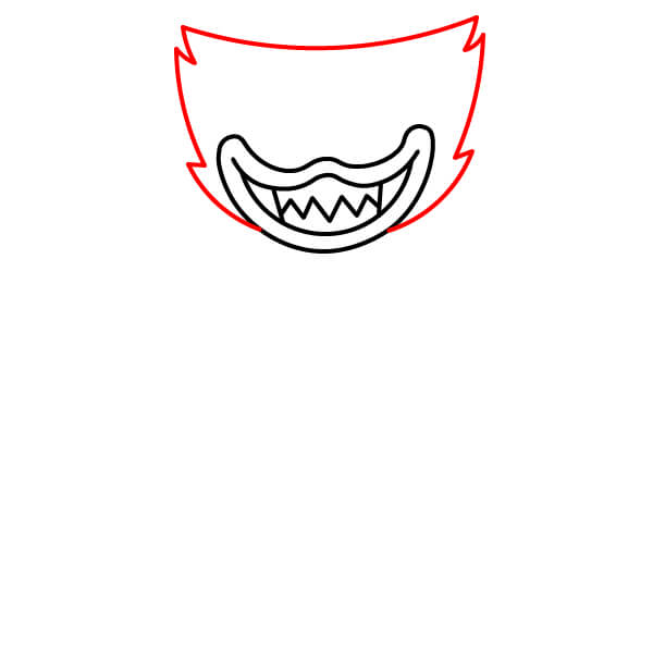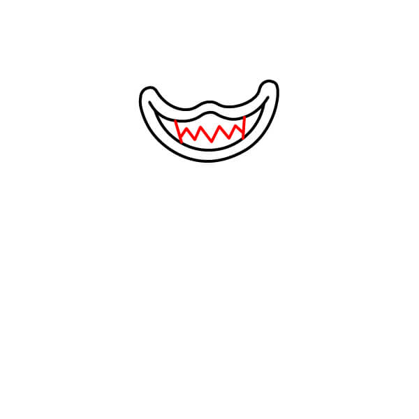 À l’intérieur de la bouche, le long de la courbe inférieure, dessine une rangée de lignes en zigzag pointues pour former les dents menaçantes.