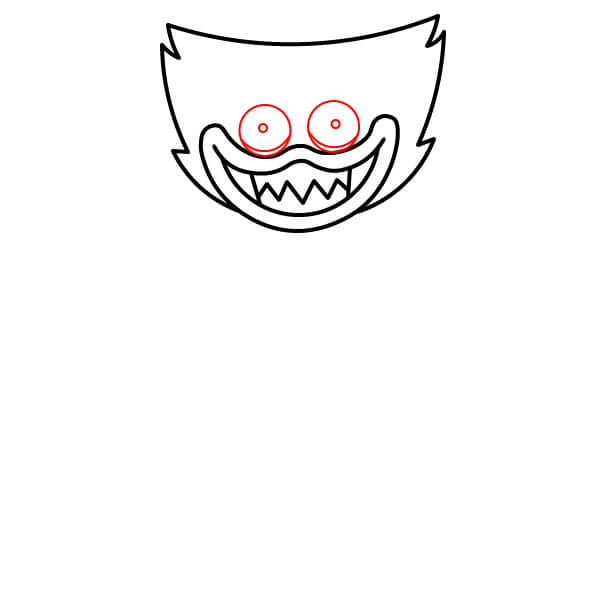Dessine deux grands cercles au-dessus de la bouche pour les yeux. À l’intérieur de chacun, ajoute un cercle plus petit pour les pupilles.