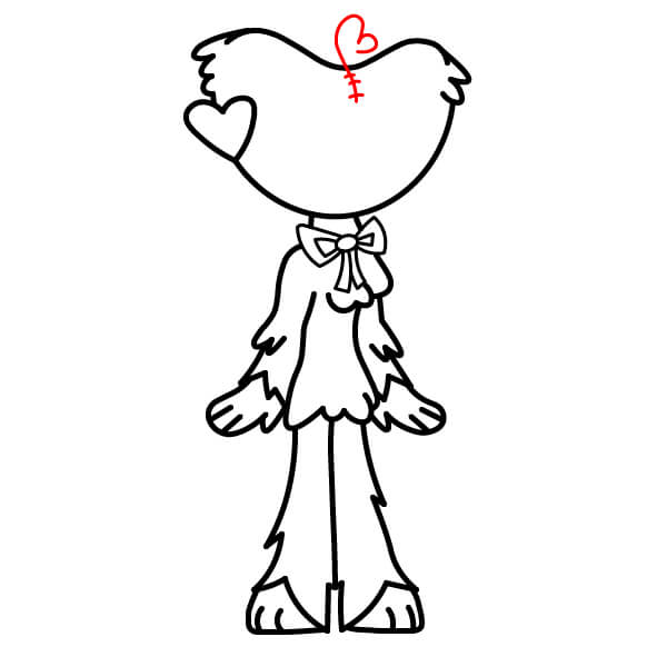 Dessine une grande forme arrondie pour la tête, en partant près du cœur. Le contour doit être ondulé ou pointu sur le dessus pour représenter la fourrure.