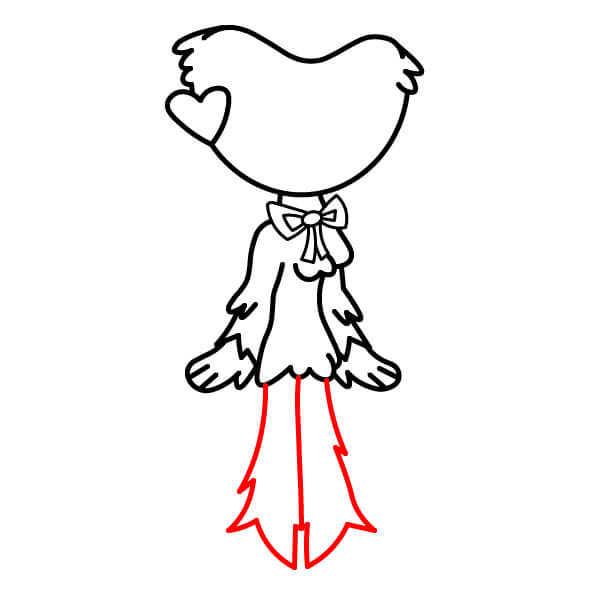 À partir du bas du torse, dessine de longues lignes légèrement ondulées pour les jambes. Elles doivent être plus larges vers le bas, près des pieds, et se séparer pour former deux jambes.