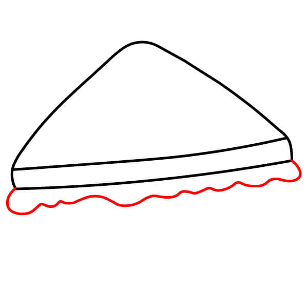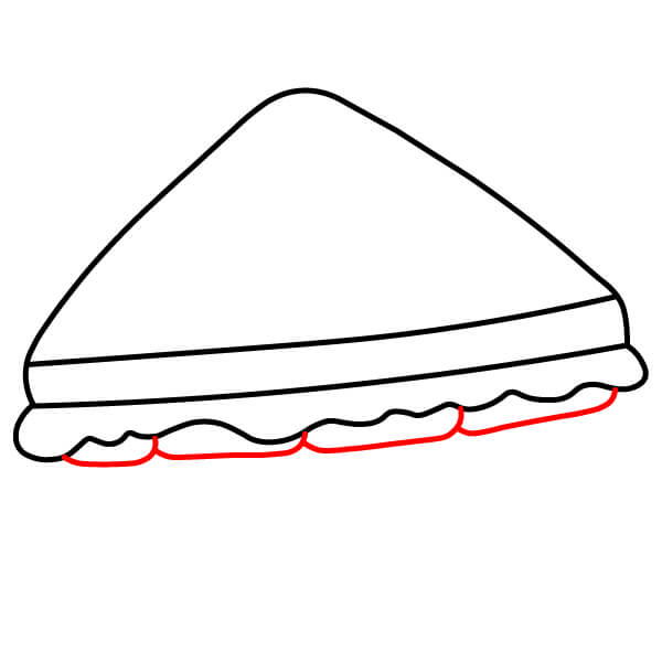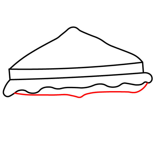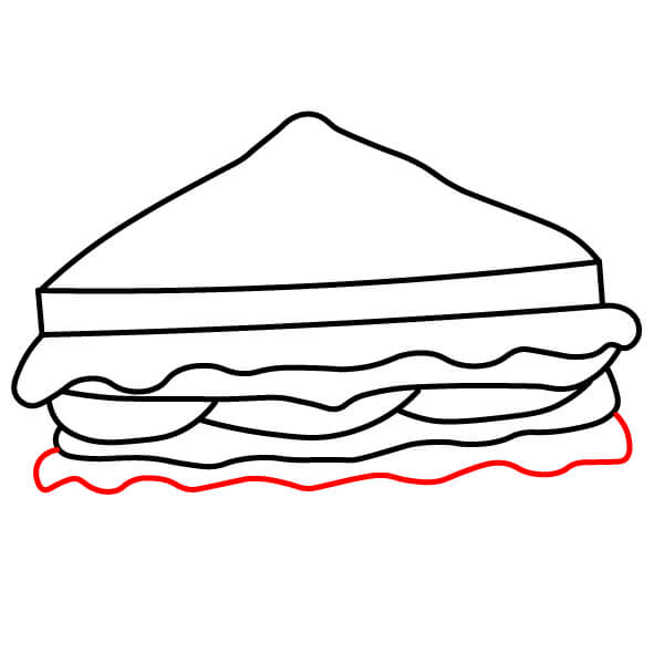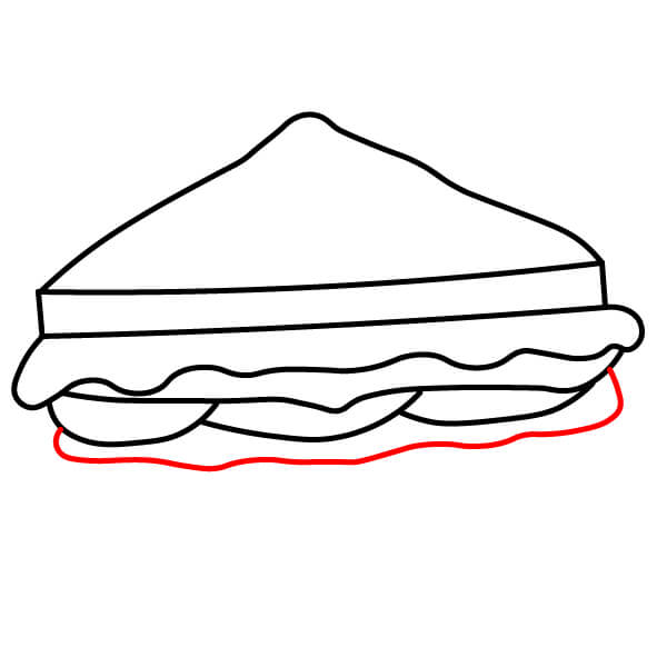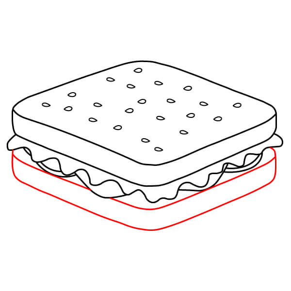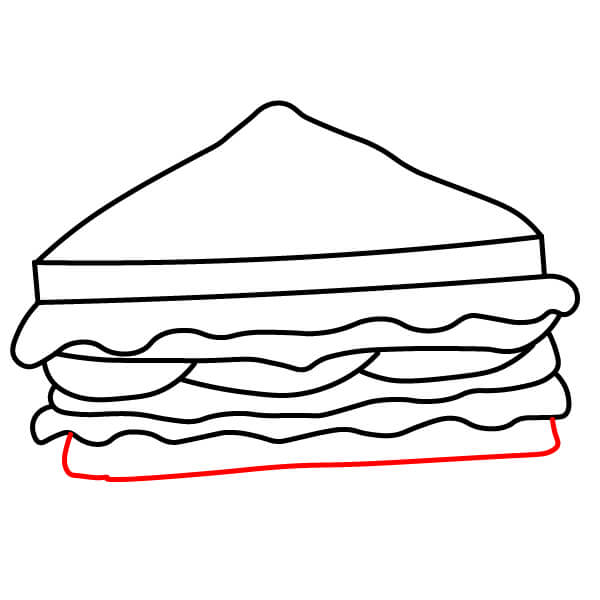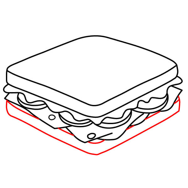 Étape 7 : Tracez une ligne droite pour le bord inférieur du sandwich, créant ainsi la base de la tranche de pain inférieure.