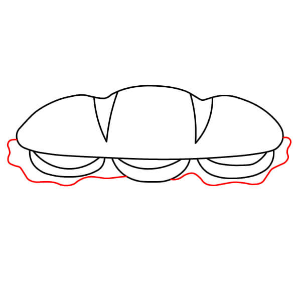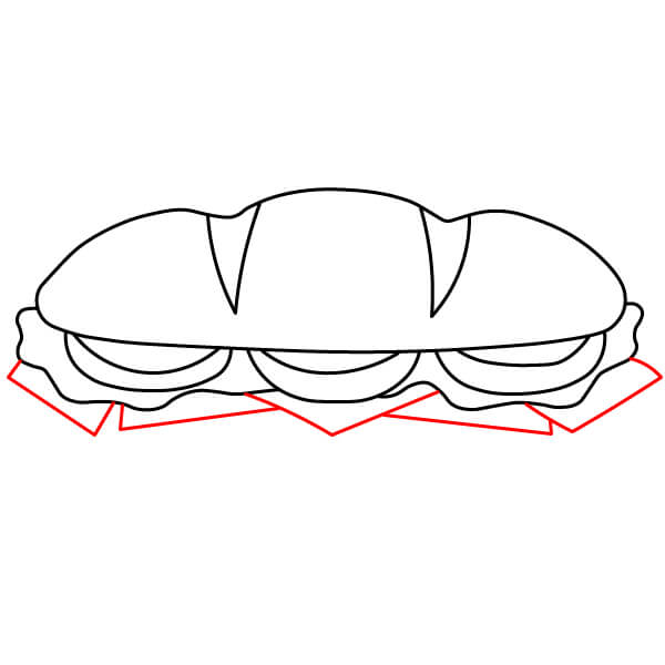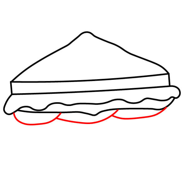 Étape 6 : Terminez le contour du sandwich en dessinant le pain du dessous et en le reliant à la garniture.