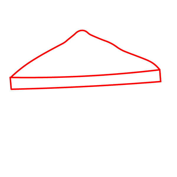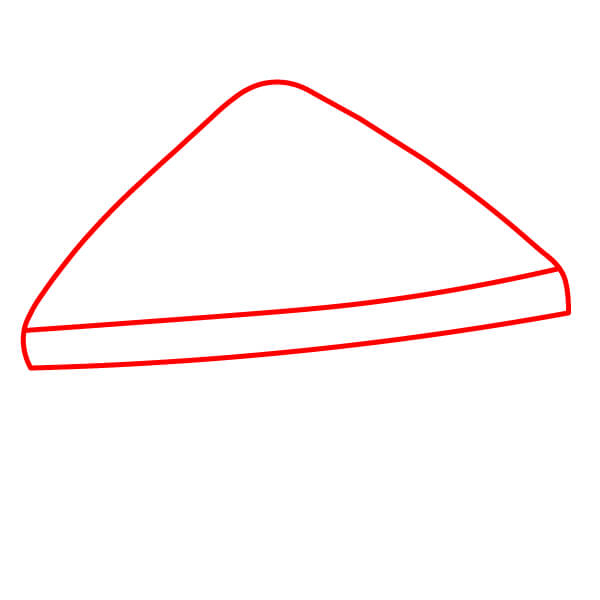Étape 1 : Commencez par dessiner le contour de la tranche de pain supérieure. C’est un triangle à base plate et légèrement plus épais sur le côté.