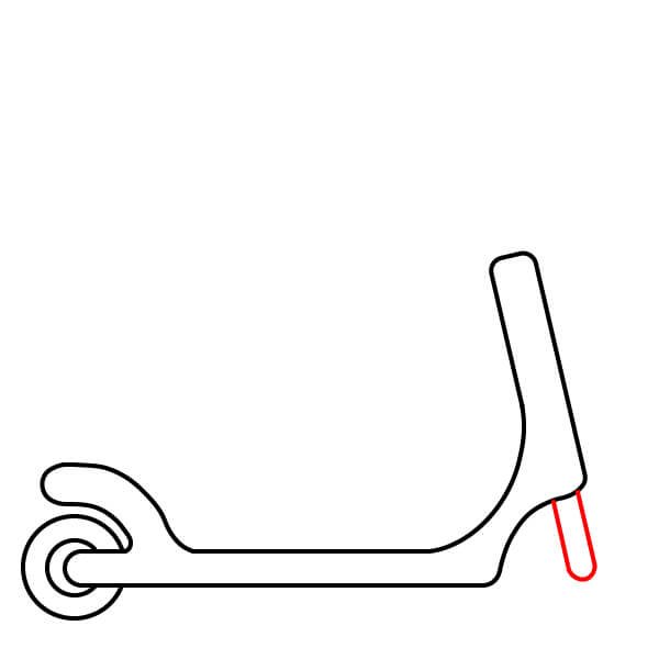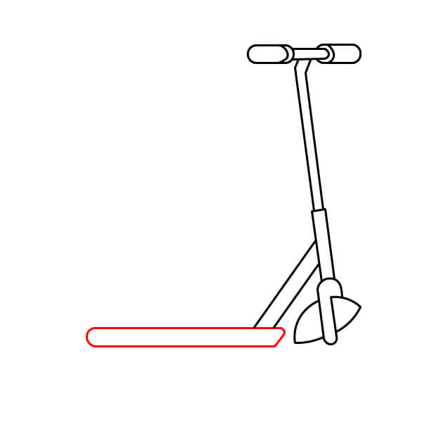 Étape 2 : Dessinez le plateau de la trottinette, en partant de la roue arrière vers l’avant.