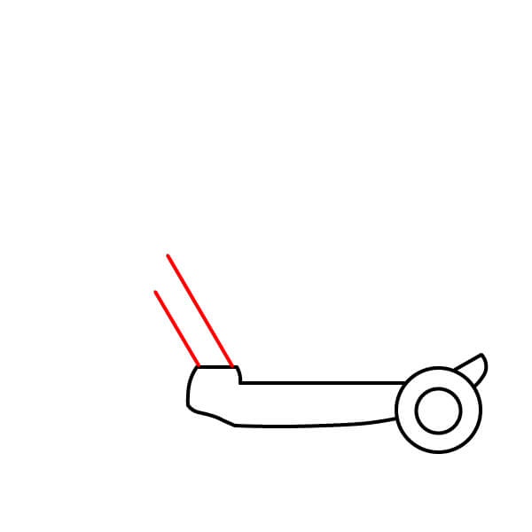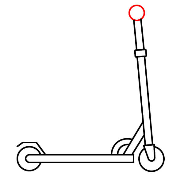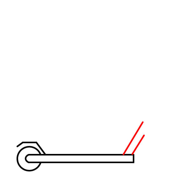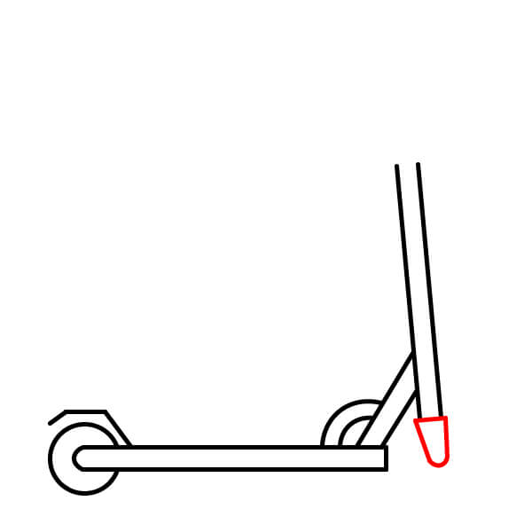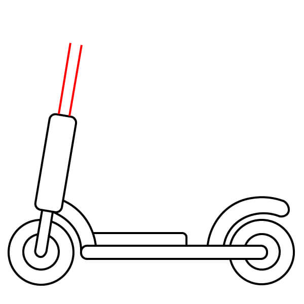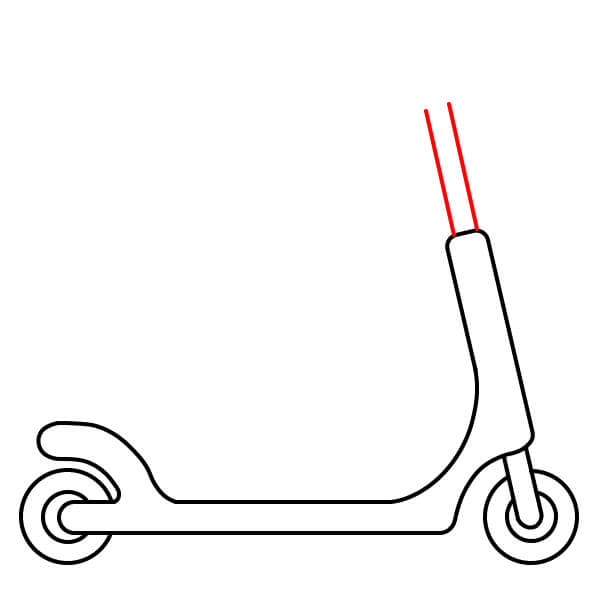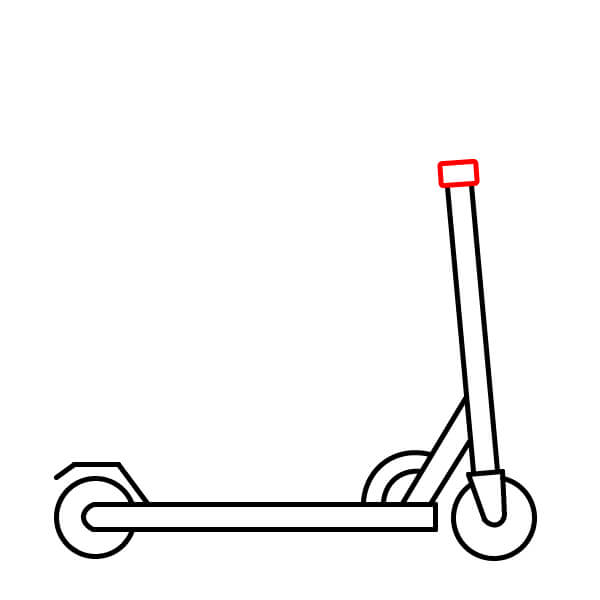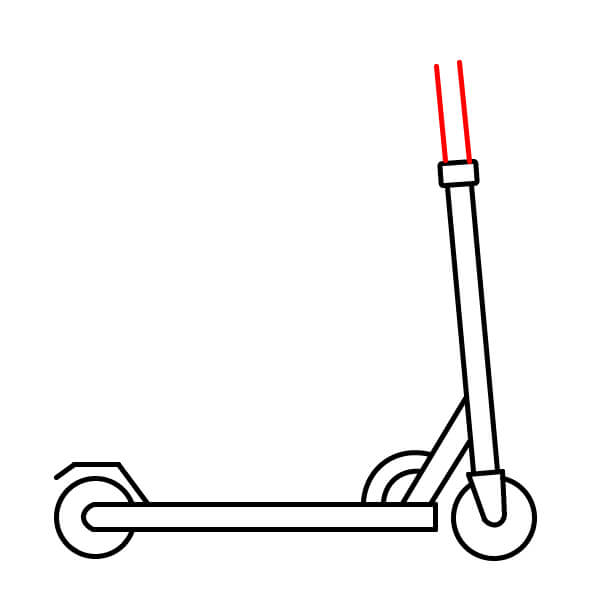Étape 10 : Tracez deux autres lignes parallèles verticalement vers le haut depuis le petit rectangle dessiné à l’étape 9. Elles représentent le guidon de la trottinette.
