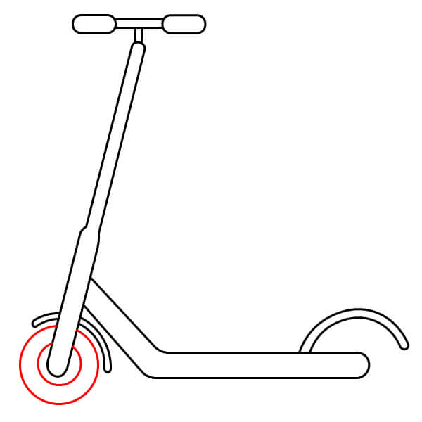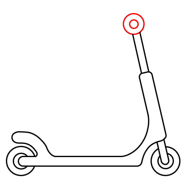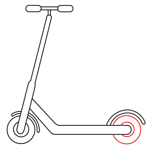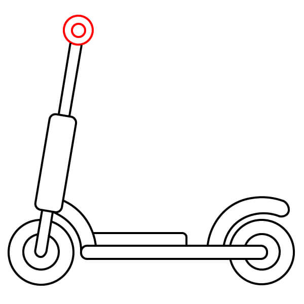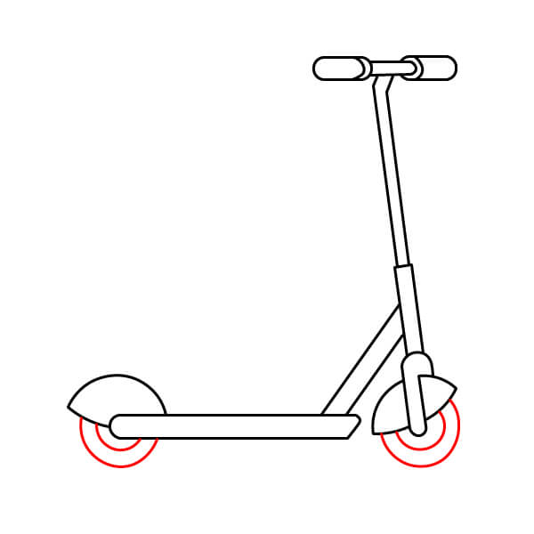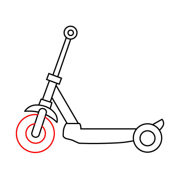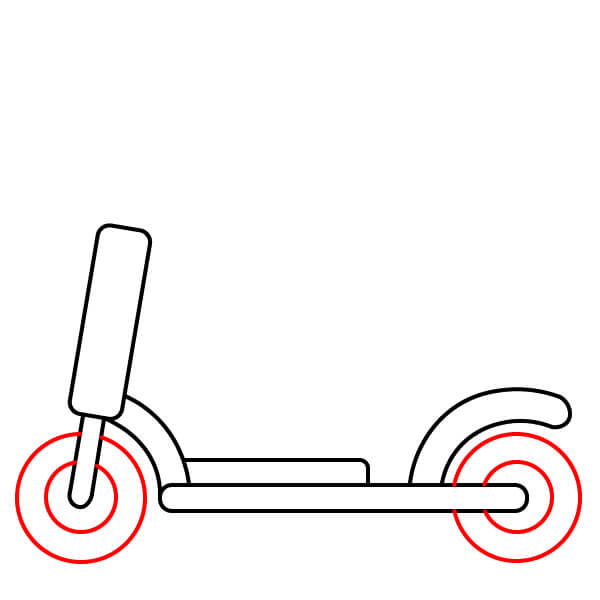 Étape 7 : Dessinez deux cercles concentriques à l’avant et à l’arrière de la trottinette pour créer les roues.