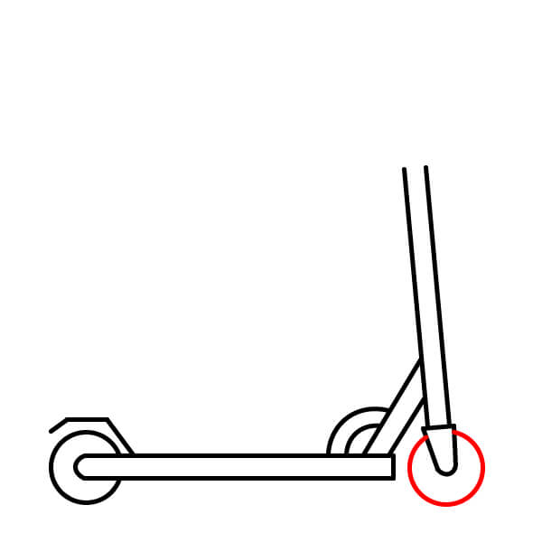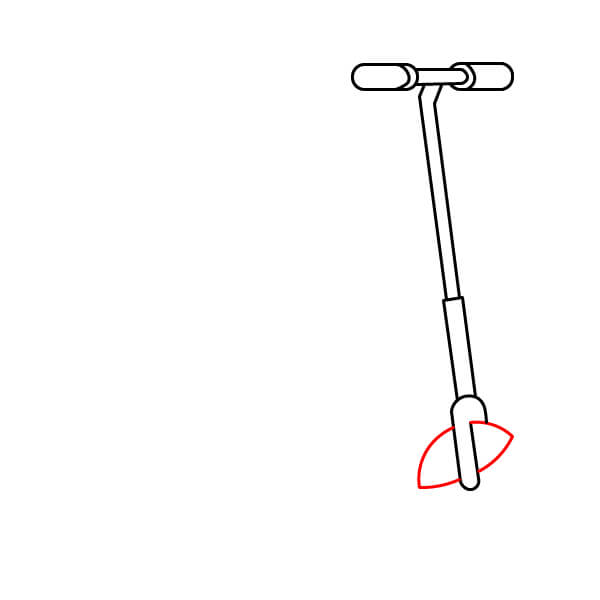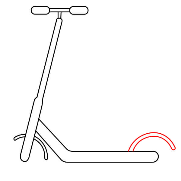 Étape 3 : À l’avant de la trottinette, tracez une ligne incurvée en forme de U. Ce sera la fourche avant qui maintient la roue.