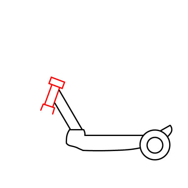 Étape 5 : Dessinez la potence du guidon qui part de la fixation et un petit cercle tout en haut pour la poignée.