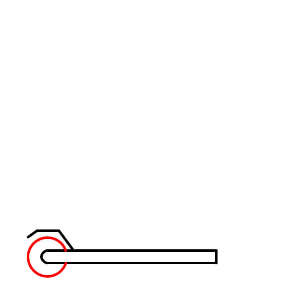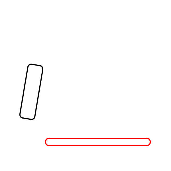 Étape 2 : Sur le côté gauche du rectangle arrondi, ajoutez un petit segment de ligne incliné, légèrement orienté vers le haut et la gauche. Cela amorce la formation du garde-boue de la roue arrière.