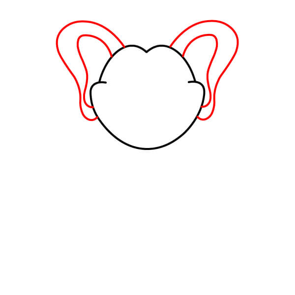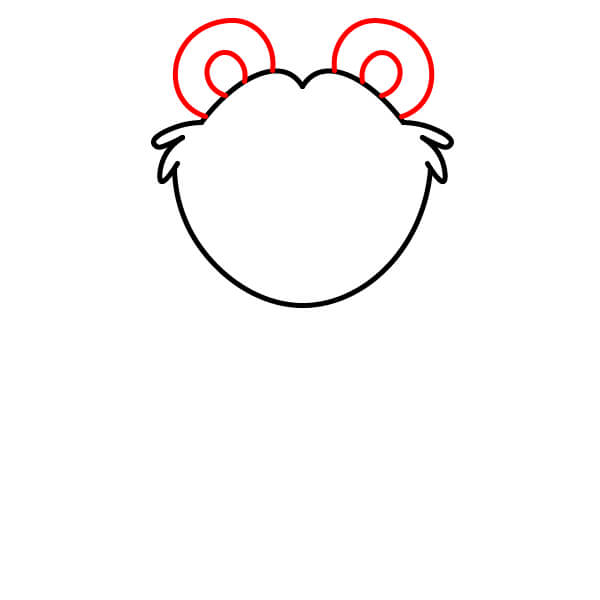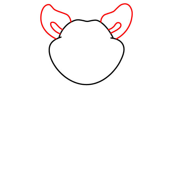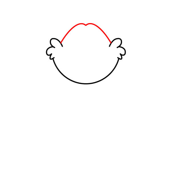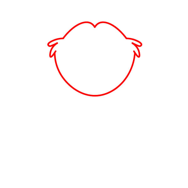 Commencez par dessiner le contour de la tête. Elle doit être large et arrondie, avec une légère indentation en forme de “M” ou une courbe au sommet et de petites touffes de poils sur les côtés.