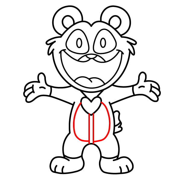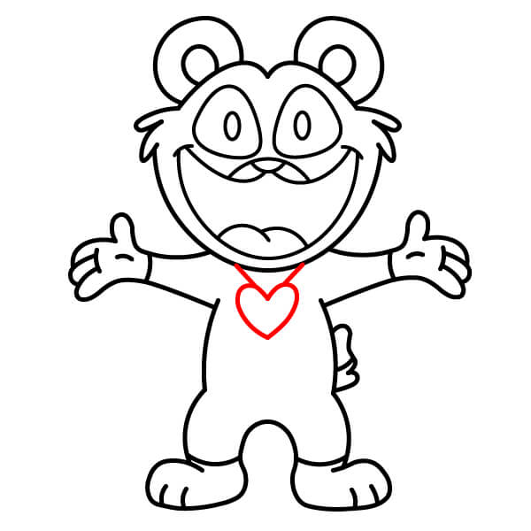 Maintenant que le contour de base est terminé, ajoutez un cœur autour du cou et de la poitrine. Ce sera le pendentif emblématique de Bobby BearHug.