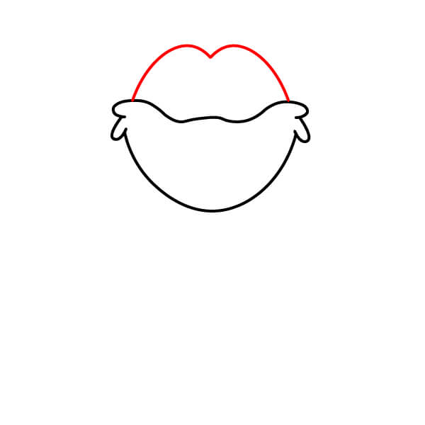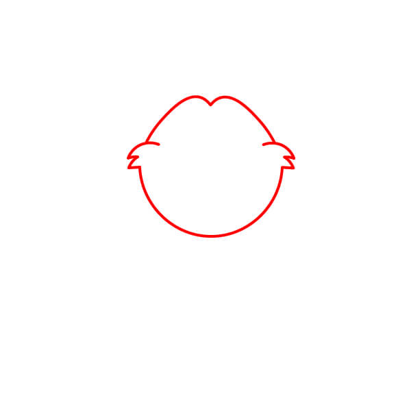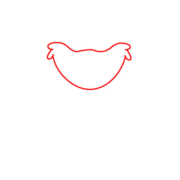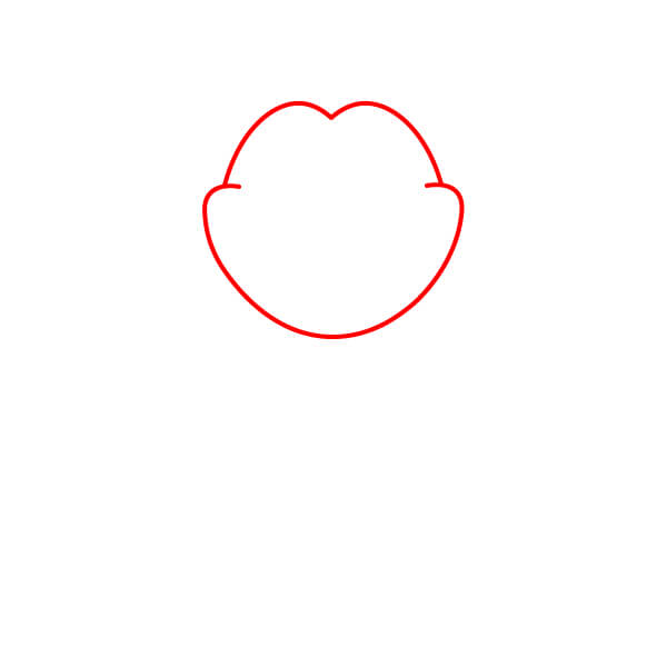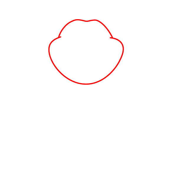 Commencez par dessiner le contour de la tête. Il doit s’agir d’une grande forme arrondie avec une légère courbe en “W” au centre.