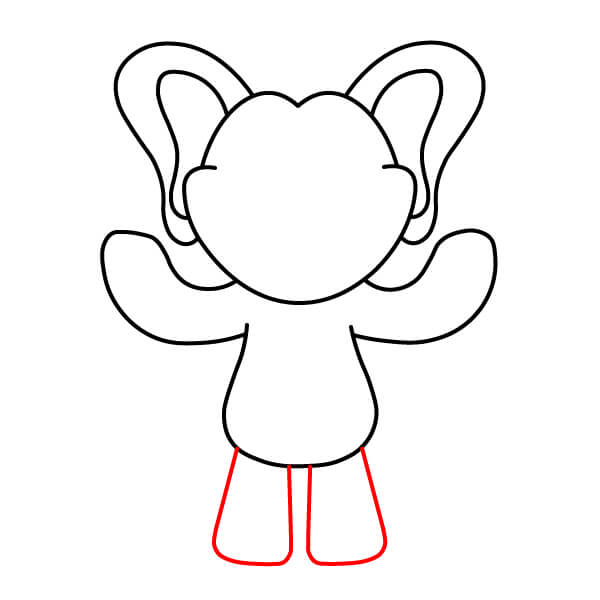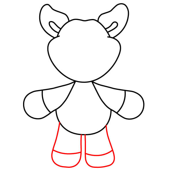Dessinez les pattes et les pieds. Ajoutez deux formes simples, rectangulaires ou légèrement arrondies, partant du contour du corps et formant les pattes et les pieds.