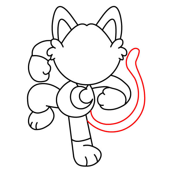 Dessinez la queue. Esquissez une ligne fine et incurvée partant de l’arrière du corps, avec une petite touffe de poils ou une forme de flamme à l’extrémité.