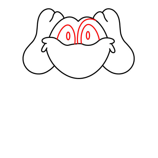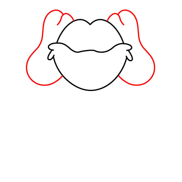 Ajoutez les longues oreilles tombantes. Dessinez une grande forme arrondie de chaque côté de la tête, en les reliant près du haut du visage. Les oreilles doivent paraître douces et tombantes.