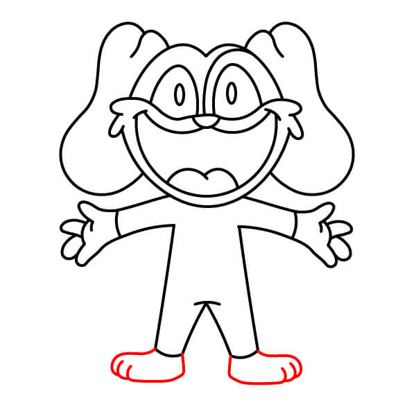 Dessinez les pieds. Ajoutez deux formes arrondies au bas des jambes pour les pieds, avec de petits traits courbes pour suggérer les orteils.